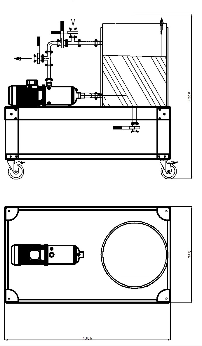 Flanqueado a la planta a limpiar, crea una recirculación a presión y alta temperatura de líquidos detergentes y soluciones para el enjuague.